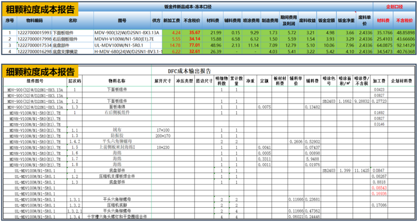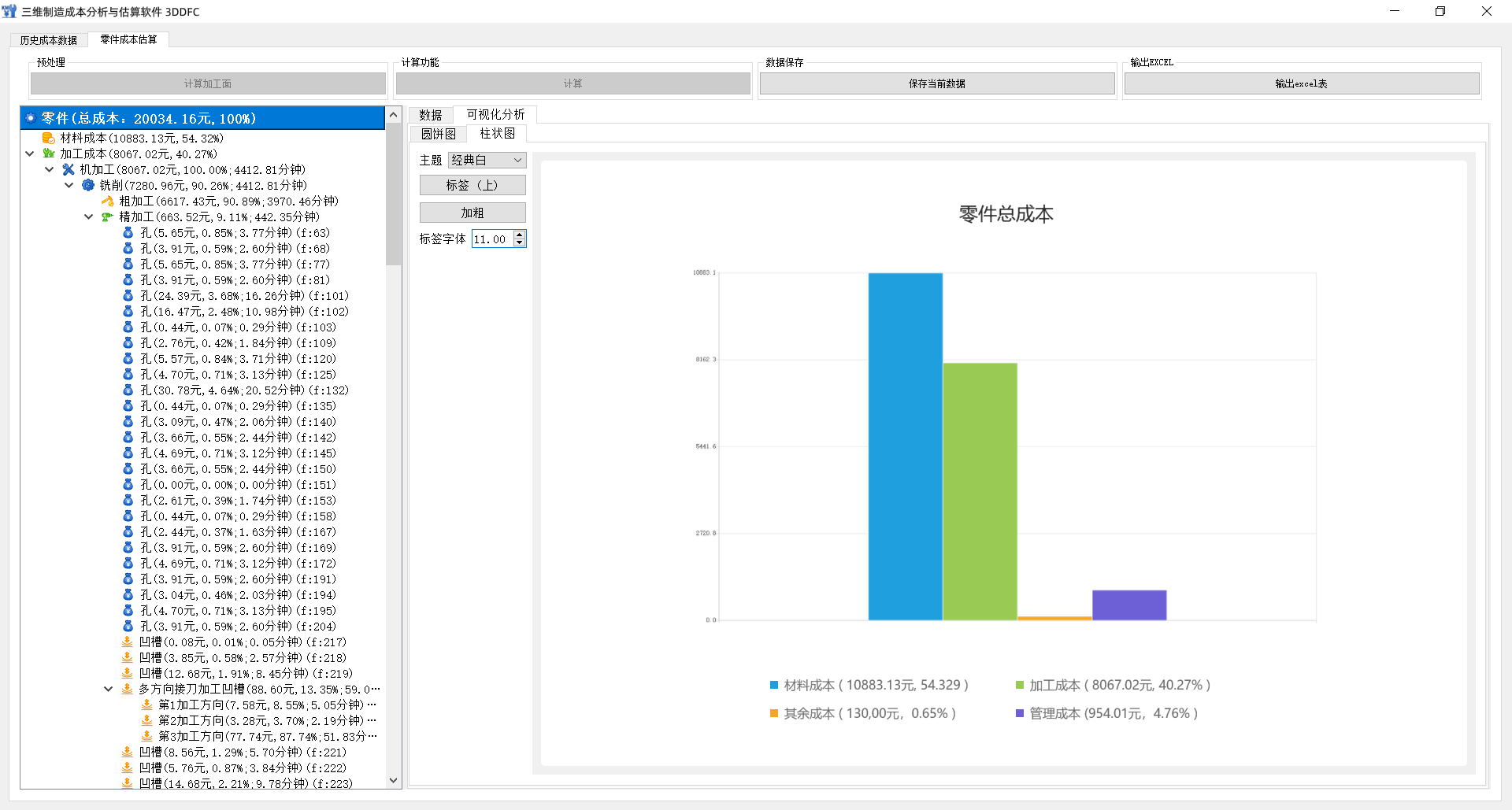 • 支持多種數據圖形(如餅圖、柱狀圖等),直觀展示不同制造工藝成本占比