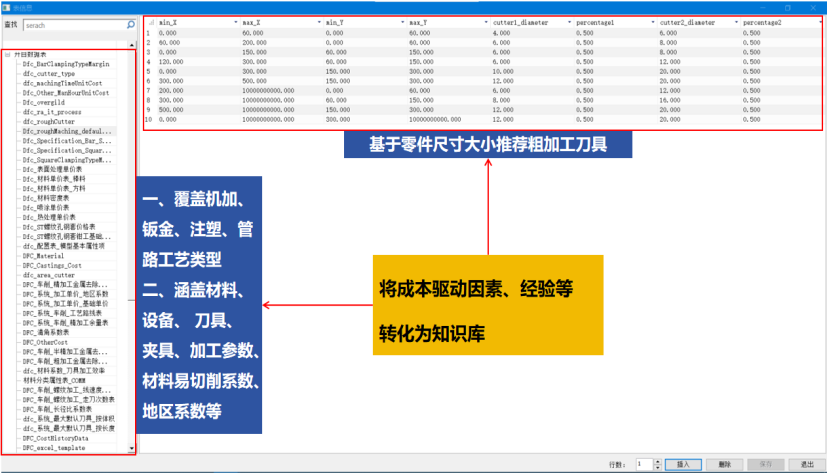 • 內置功能完善的工藝知識庫,含基礎配置庫、差異配置庫、加工配置庫等,可靈活管理