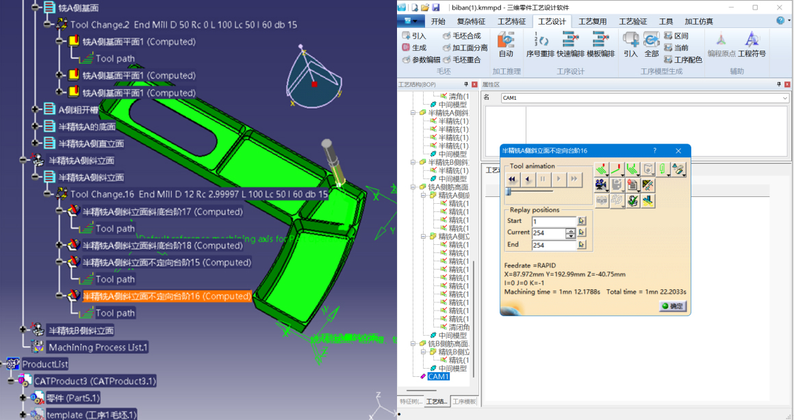 3DMPS可將生成的工序規劃、內容、刀具信息及三維工序模型信息精準傳遞至CAM模塊,依據 3DMPS 工藝過程結構樹自動創建程序結構,減少人工干預,提升編程效率與質量,還可自動生成 CAM 仿真視頻,讓編程更流暢高效。