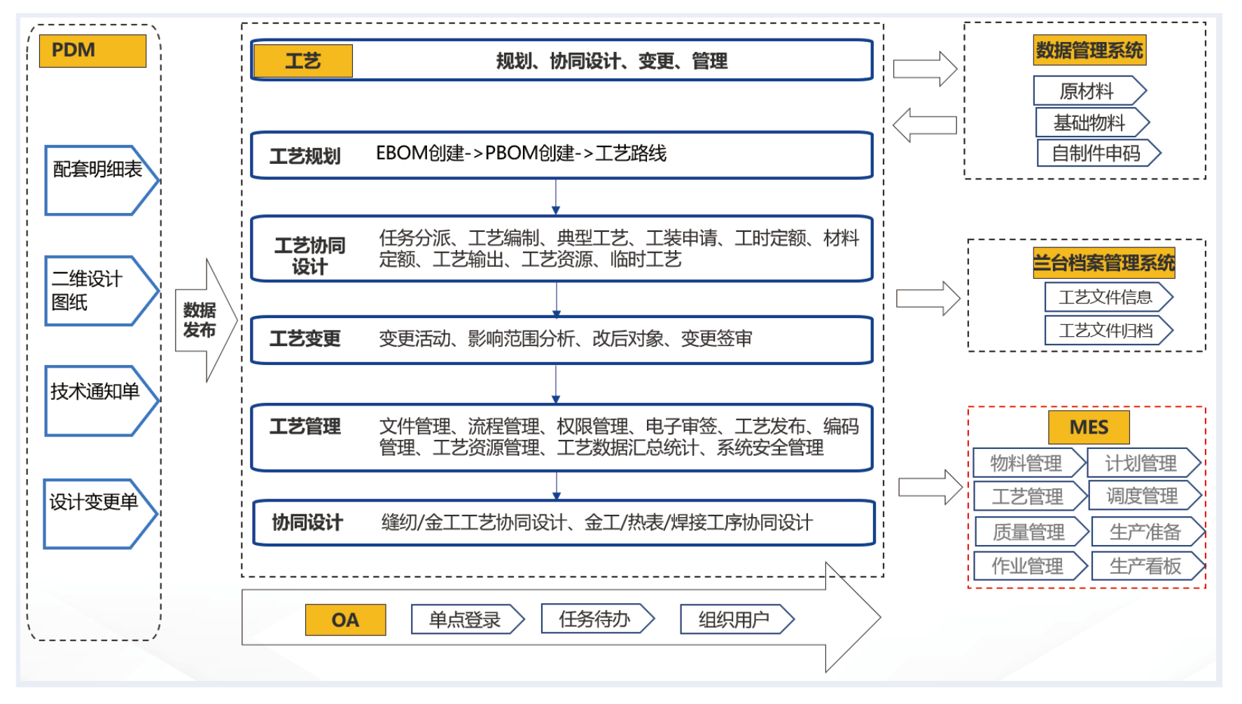 與PDM、OA、數據管理系統、檔案管理系統的深度集成,實現跨部門數據流實時同步,消除信息孤島,打通從設計、工藝到生產的數據流,構建協同高效的信息化生態。
